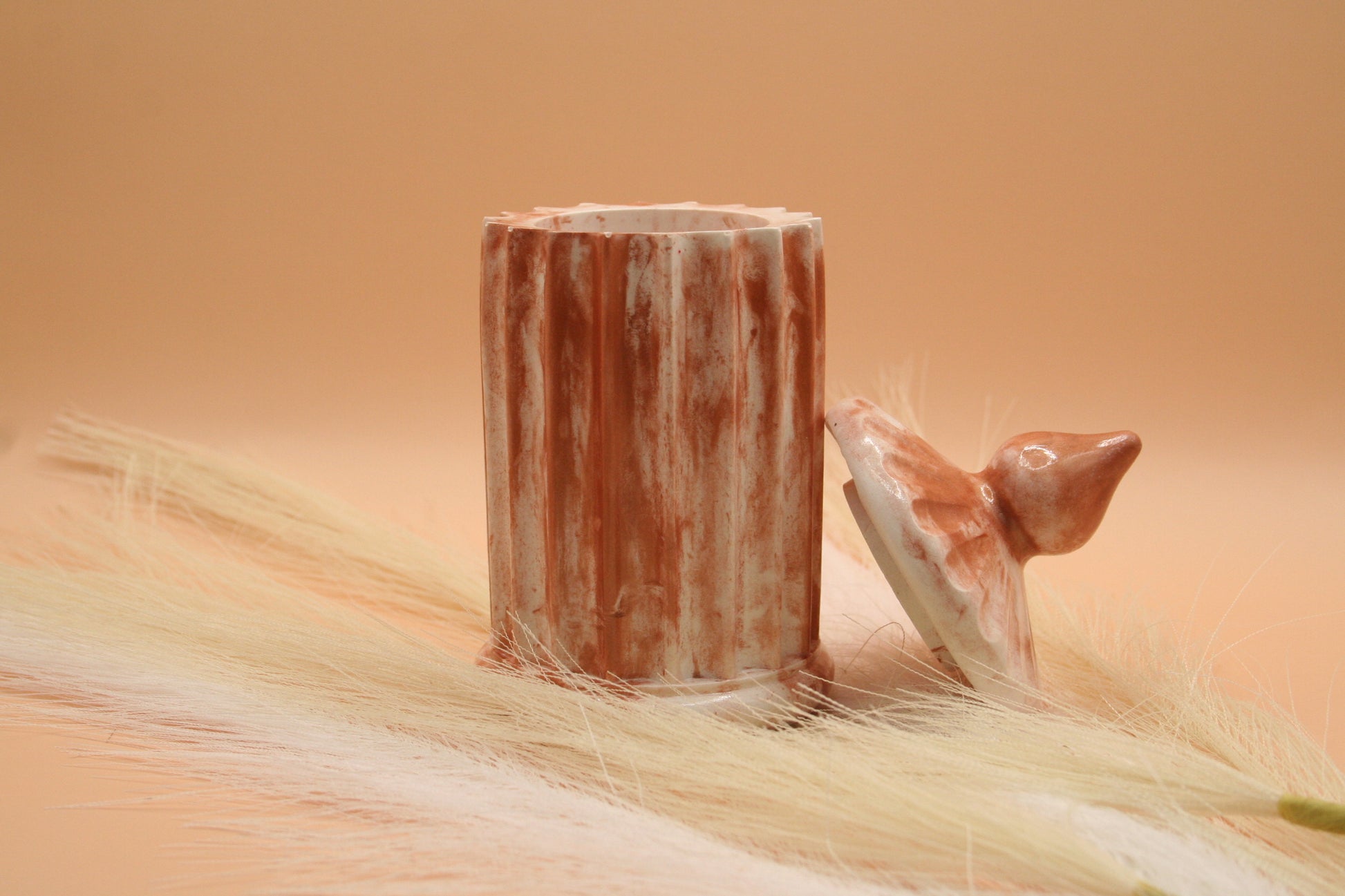 Un voyage dans le temps avec notre jarre "Amphore Antique". Cette pièce en résine naturelle, d'un brun-rouille marbré de blanc, évoque les poteries anciennes. Sa forme et ses rainures verticales, ainsi que son couvercle en relief, en font un objet à la fois décoratif et élégant, parfait pour habiller une étagère ou une console.
