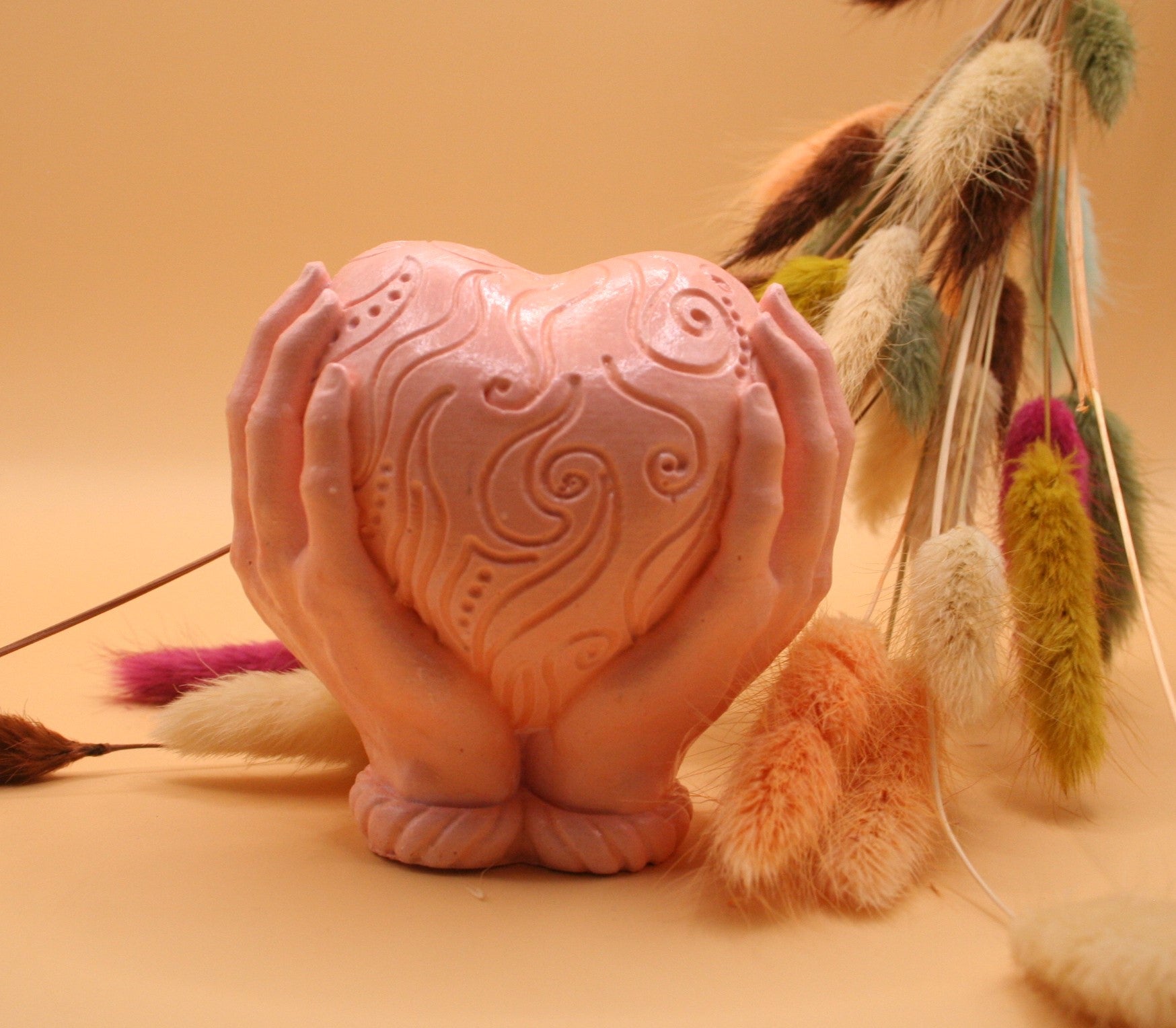 Exprimez vos sentiments avec cette sculpture émouvante et symbolique. Fabriquée en résine naturelle, elle représente un cœur texturé, délicatement tenu dans des mains protectrices. Un objet puissant et poétique, parfait pour offrir en gage d'amour, d'amitié ou de soutien. Placez-la sur une table de chevet ou une étagère pour un rappel quotidien de la force des liens humains.