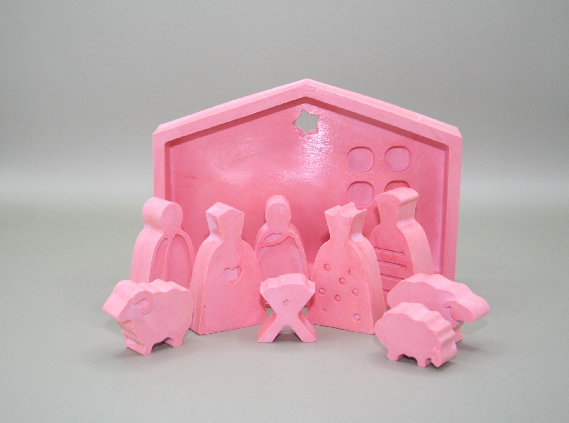 Chaque élément – Marie, Joseph, l’Enfant Jésus, les Rois mages, les animaux et l’étable – est réalisé à la main. Les légères variations de formes ou petites imperfections rendent chaque crèche unique et authentique.