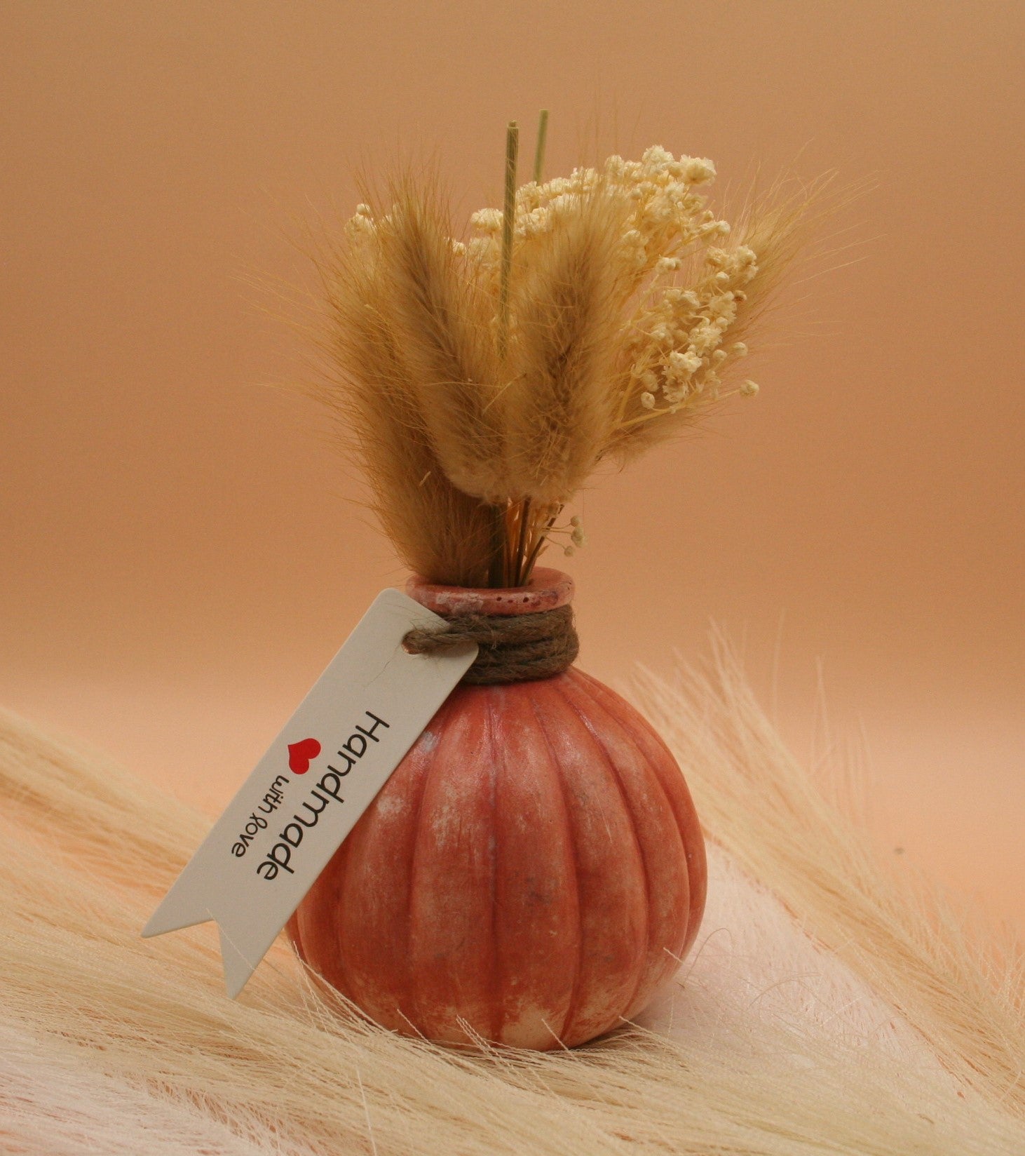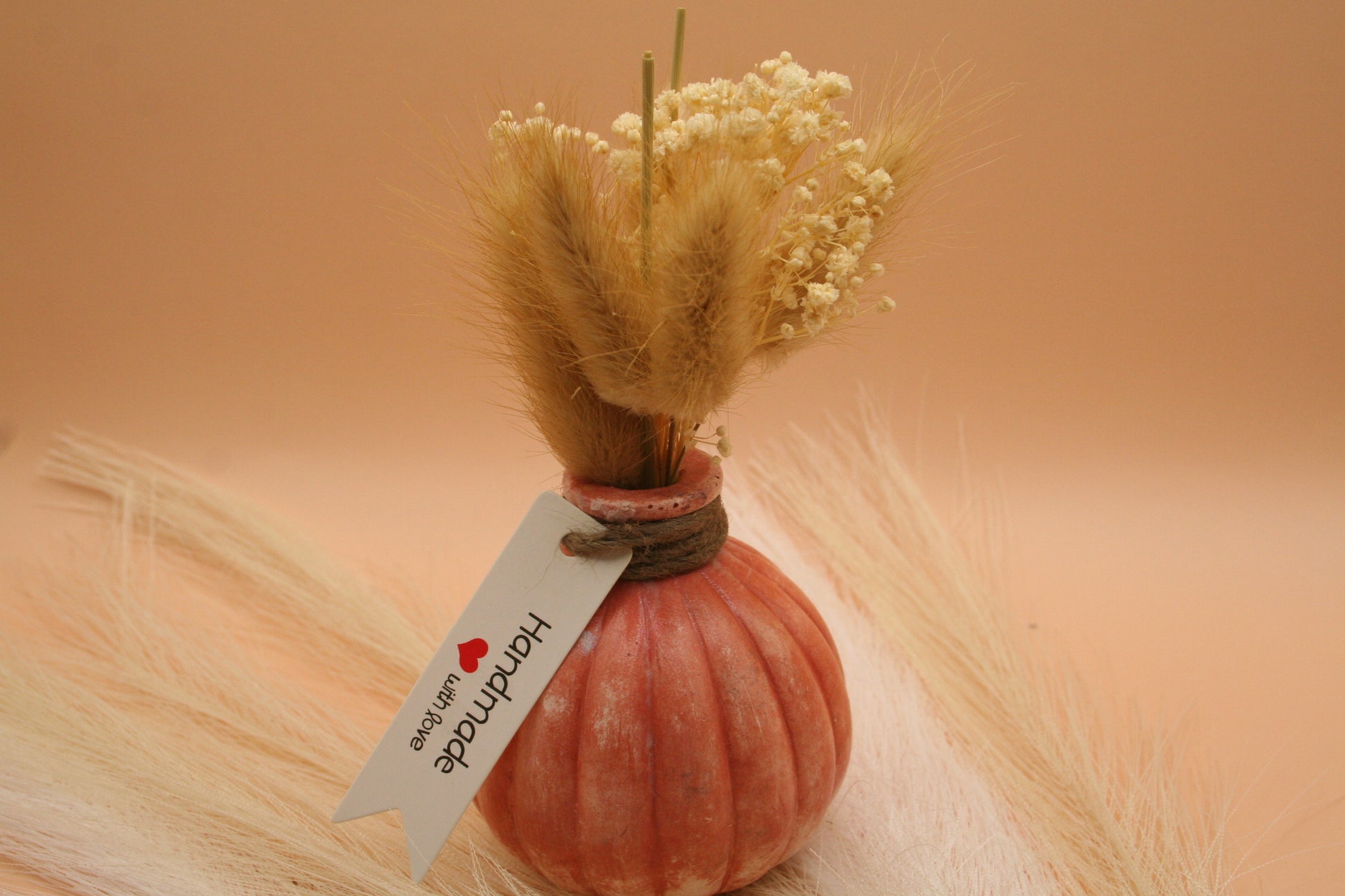 Apportez une touche de nature et de douceur à votre intérieur avec notre vase "Douceur d'Automne". Coulé en résine naturelle, ce petit pot en forme de citrouille, dans les tons de rose saumon, présente une texture nervurée et est orné d'un ruban de ficelle. Livré avec un bouquet de fleurs séchées (pour ceux qui en ont sur la photo), c'est un objet parfait pour une décoration de saison ou pour égayer une étagère tout au long de l'année.