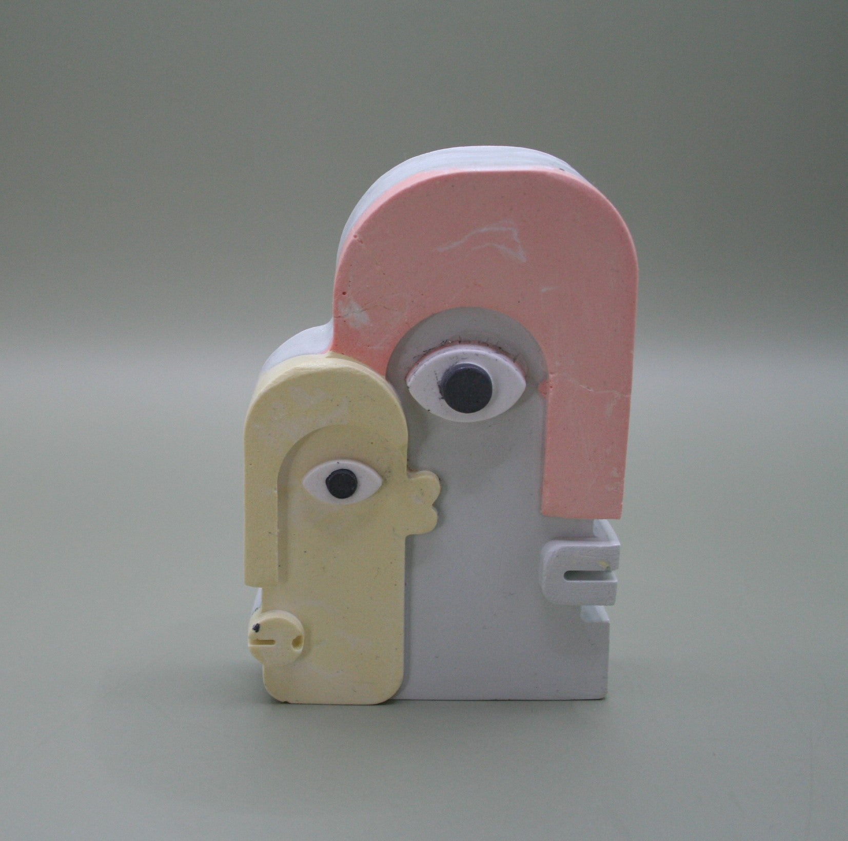 Deux visages stylisés, imbriqués dans une proximité géométrique. L’un grand, l’autre plus petit, ils semblent se répondre sans mots, dans une symétrie douce et énigmatique. Duoïde explore les thèmes de la connexion, de la filiation ou du miroir intérieur. Une œuvre minimaliste qui invite à contempler les liens invisibles entre les êtres.