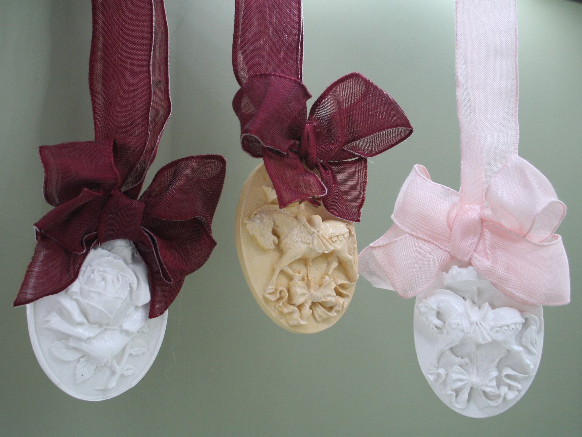 Ornement décoratif à suspendre, avec médaillon en relief et ruban rose. Parfait pour une poignée de porte, une armoire ou un espace à personnaliser avec douceur.