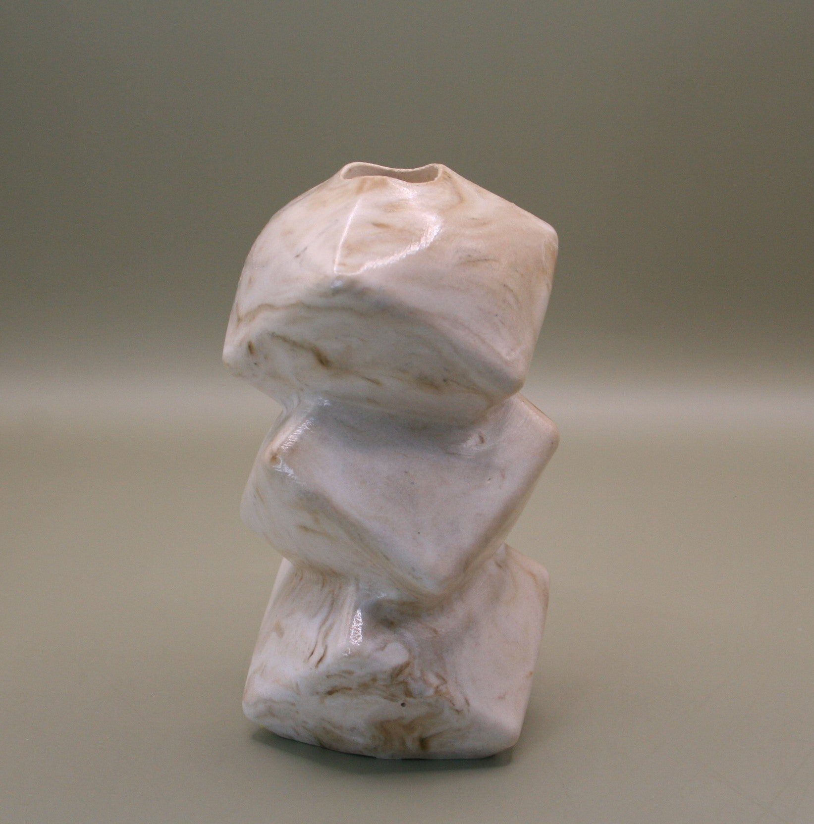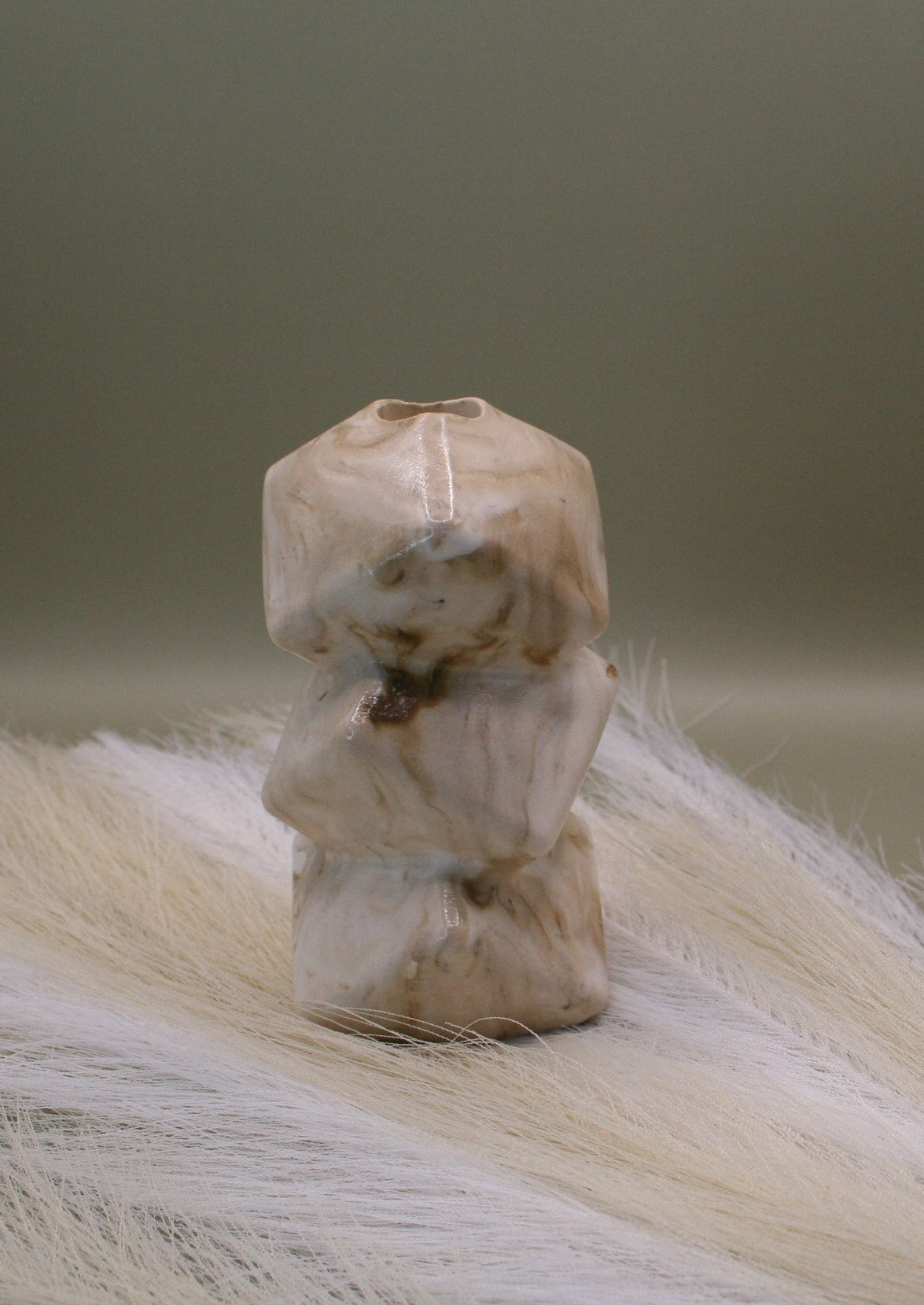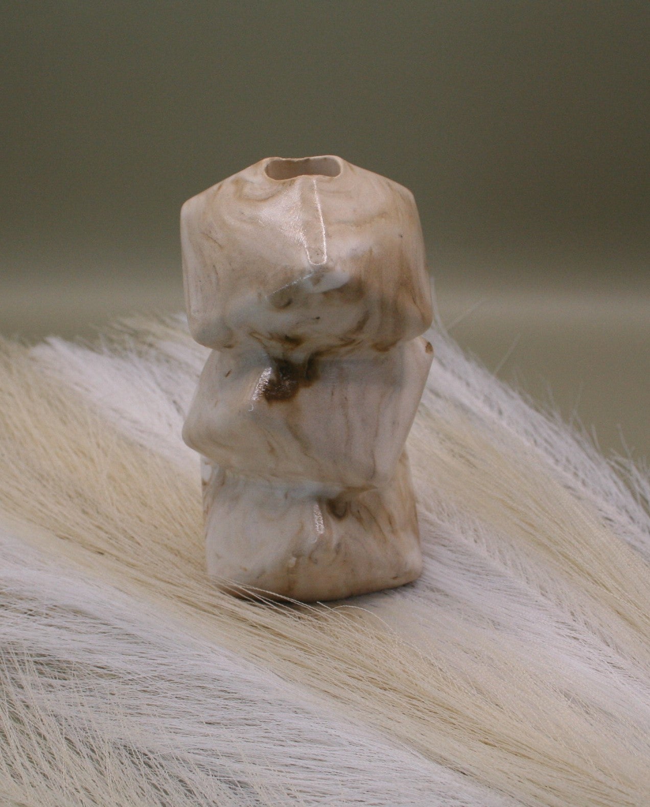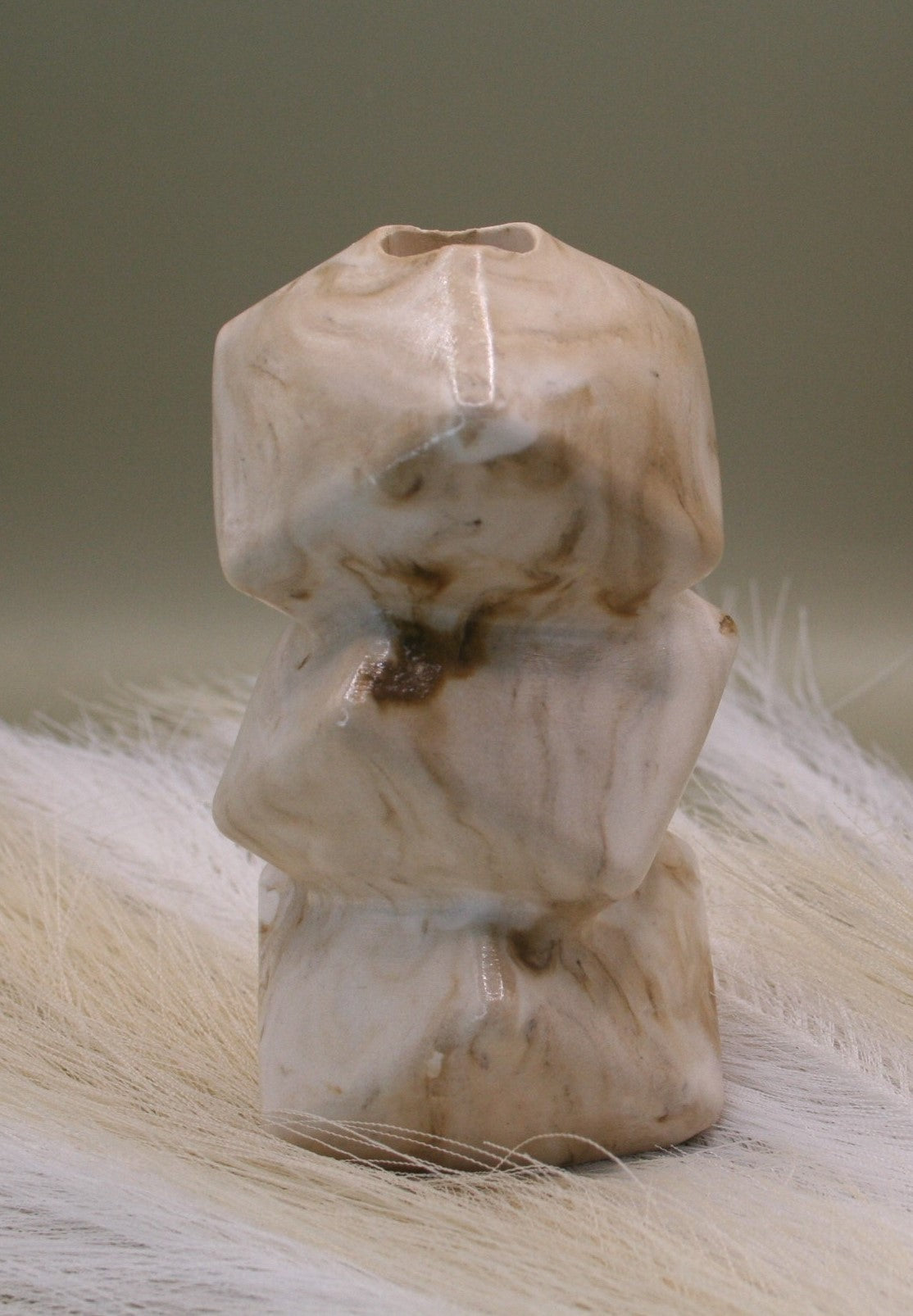 Ce vase contemporain au design sculptural évoque la beauté brute de la nature. Sa forme composée de blocs superposés aux lignes organiques rappelle des pierres polies par le temps, créant une impression d’équilibre et de mouvement.