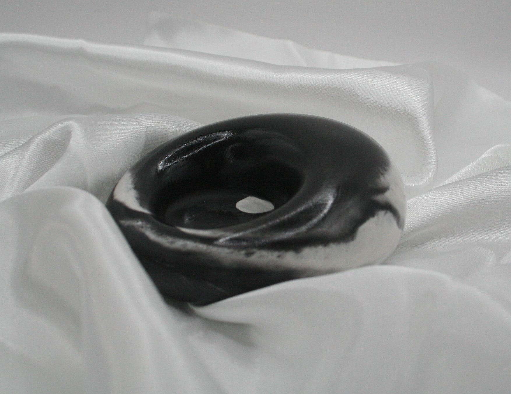 Cet objet en résine naturelle séduit par sa forme organique et minimaliste, évoquant une boucle parfaite ou un galet sculpté par le temps. Sa finition lisse et brillante en fait une pièce décorative idéale pour les intérieurs modernes, tout en pouvant de servir de bougeoir, de vide-poche, support pour bijoux ou simple élément de contemplation.