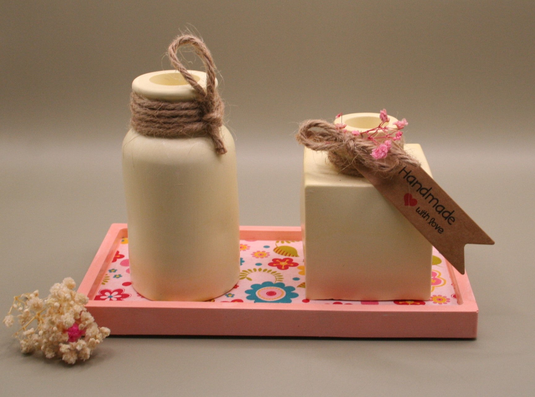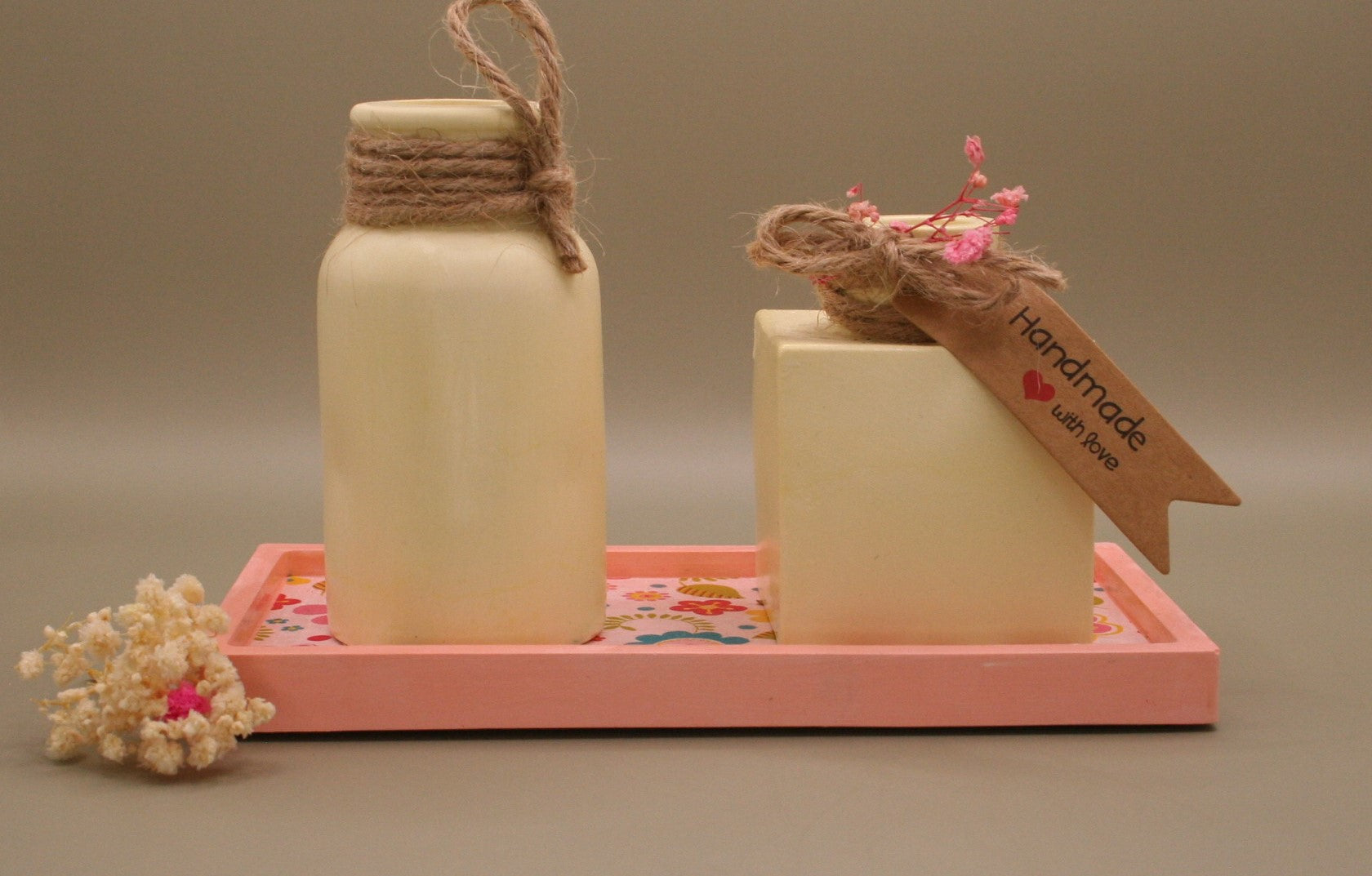 Cet ensemble décoratif se compose de vases en résine naturelle, accompagnés d’un élégant plateau assorti. Les vases, aux formes épurées et à la finition délicate, sont parfaits pour accueillir des fleurs séchées ou pour embellir vos espaces par leur seule présence. Le plateau, également en résine, apporte une touche harmonieuse et met en valeur l’ensemble tout en ajoutant une note pratique. Réalisés à la main, chaque pièce est unique et reflète un savoir-faire artisanal. Ensemble, ils créent une décoration raffinée, durable et intemporelle, qui s’intègre à merveille dans tout style d’intérieur, du bohème au contemporain.