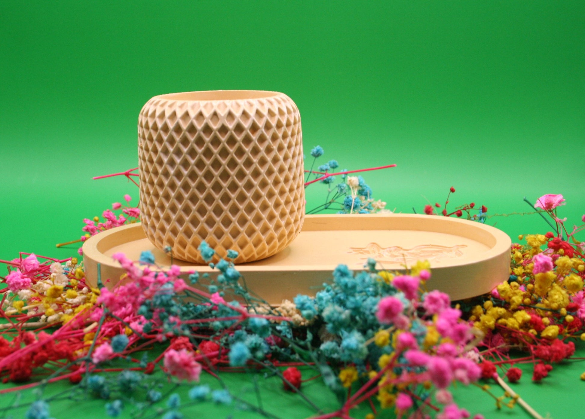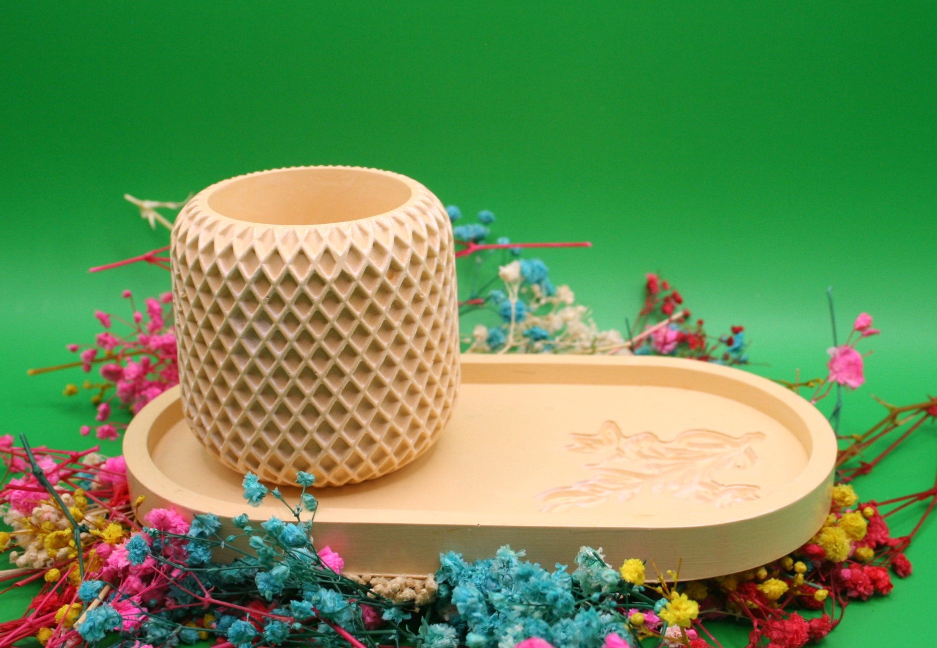Offrez un écrin de douceur à vos objets préférés avec notre ensemble "Le Cocon". Ce duo comprend un pot cylindrique à la texture géométrique unique et un plateau ovale assorti, tous deux coulés en résine naturelle d'une teinte jaune moutarde douce. Parfait pour organiser vos bijoux, bougies, ou petits accessoires sur une coiffeuse, une table de chevet ou une entrée. Le pot peut également servir de cache-pot pour une petite plante.