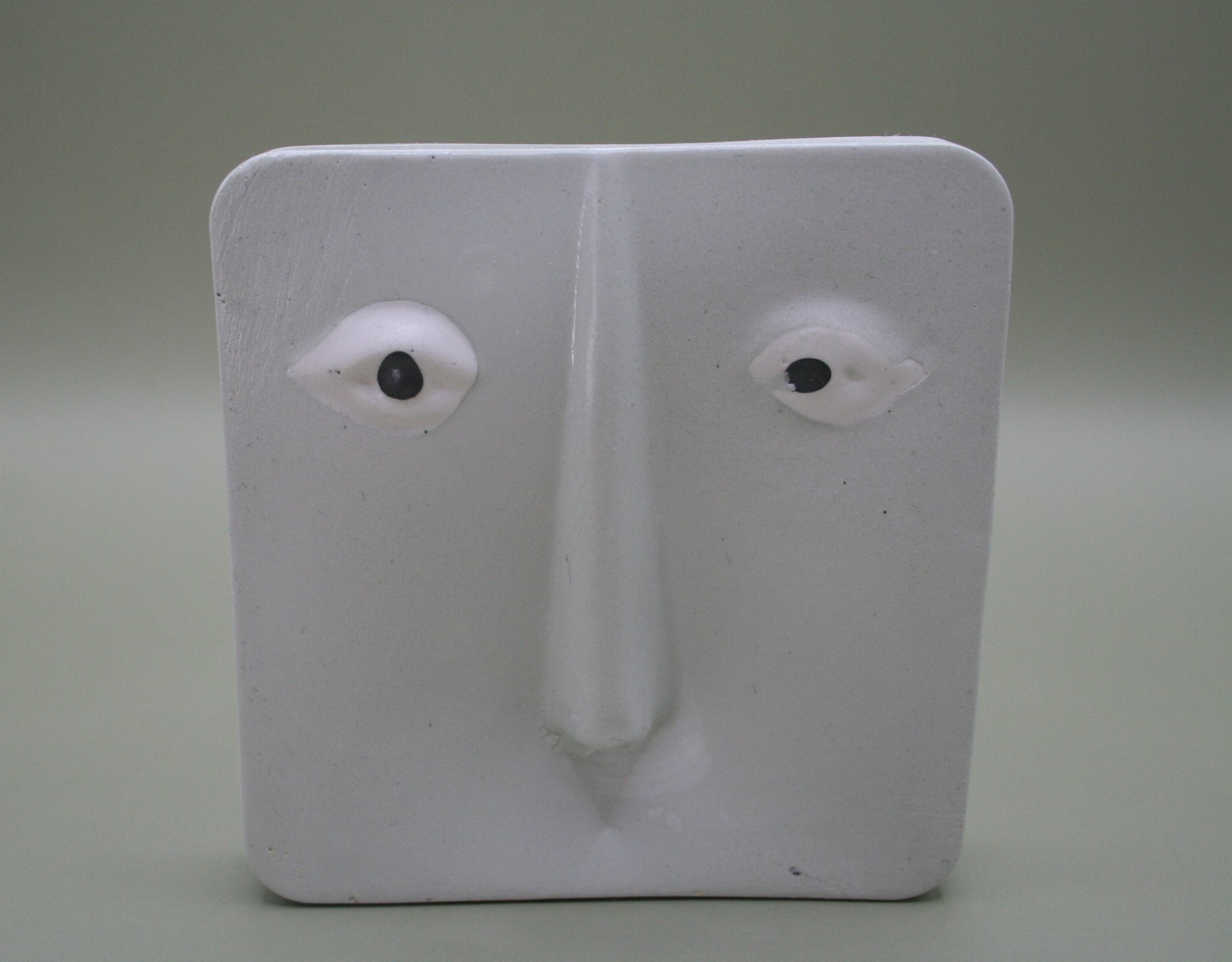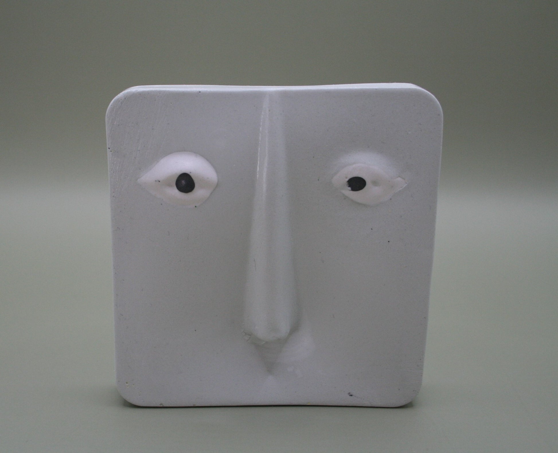 Sculpture murale en résine, au design épuré et géométrique. Ce visage stylisé, avec son nez proéminent et ses yeux minimalistes, invite à une introspection silencieuse. Chaque trait, volontairement exagéré, questionne notre perception du soi et de l’autre. Une pièce idéale pour les amateurs d’art contemporain et de design brut.