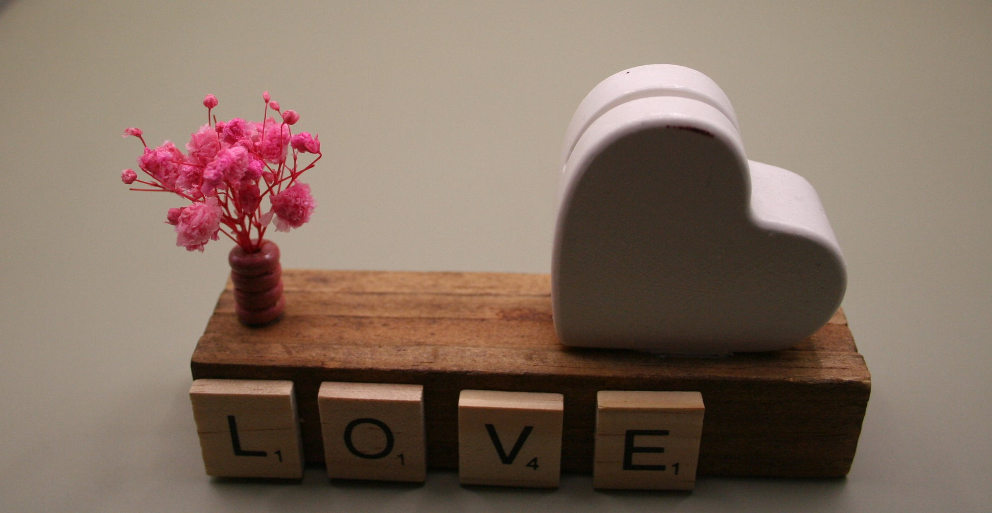 Un petit bijou de décoration qui respire la tendresse. Ce support, porte-photo en bois accueille un cœur sculpté en résine naturelle, accompagné d’un mini bouquet de fleurs séchées roses et de lettres façon Scrabble formant le mot "LOVE". Idéal comme cadeau ou décoration de table pour un mariage, la Saint-Valentin ou tout moment spécial.