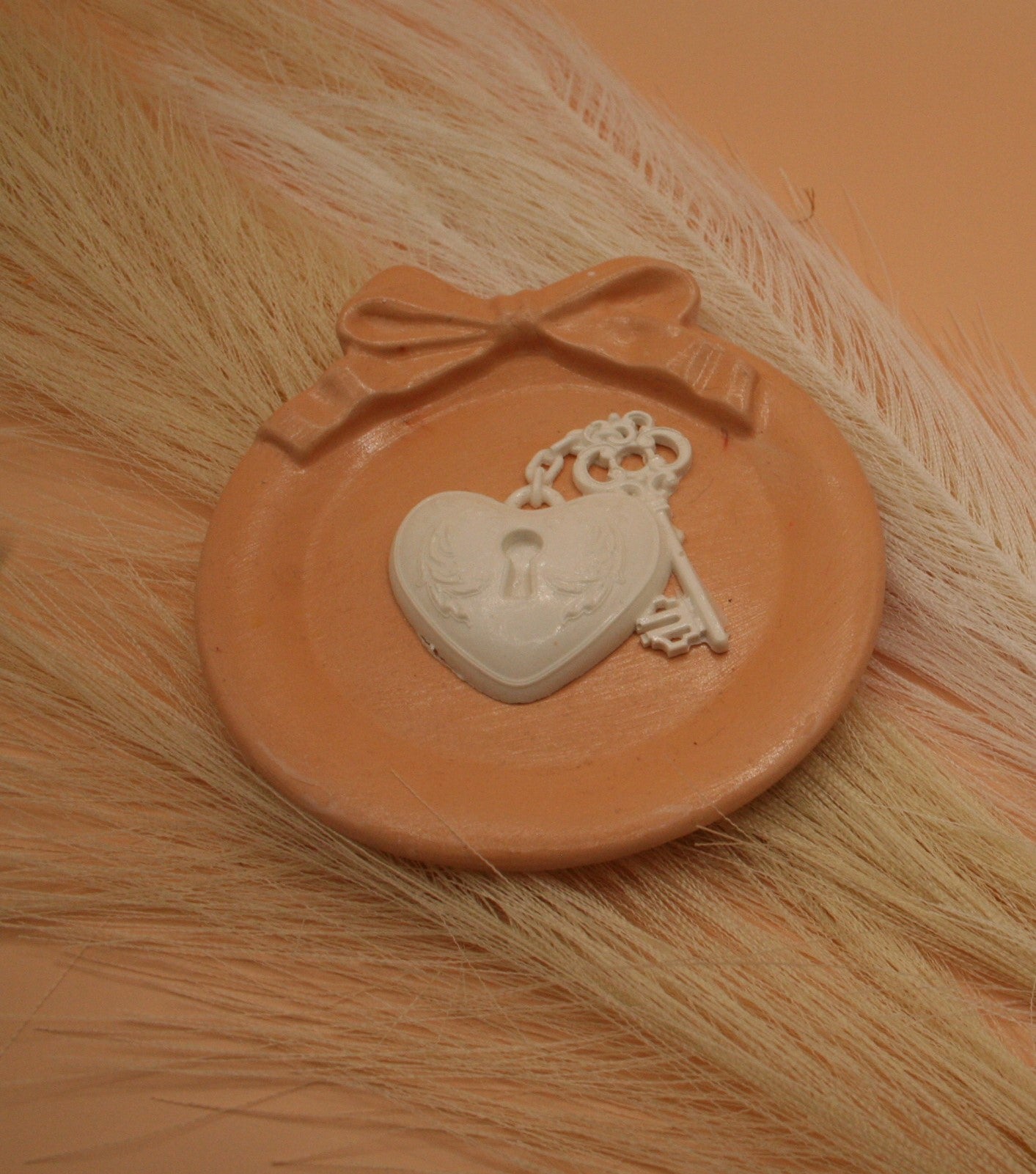 Révélez votre amour pour les petits détails avec cette adorable cadre en résine naturelle. Sa forme ronde surmontée d'un délicat nœud et son relief en forme de cœur et de clé en font un objet unique. Un cadeau idéal pour la Saint-Valentin, un anniversaire ou simplement pour faire plaisir.