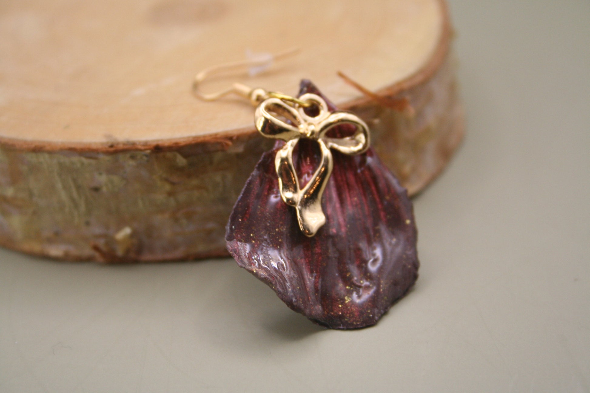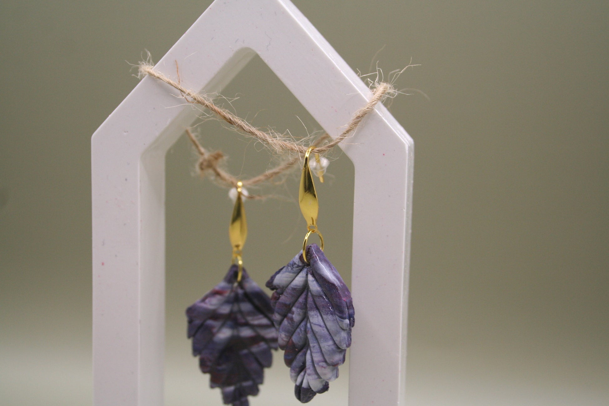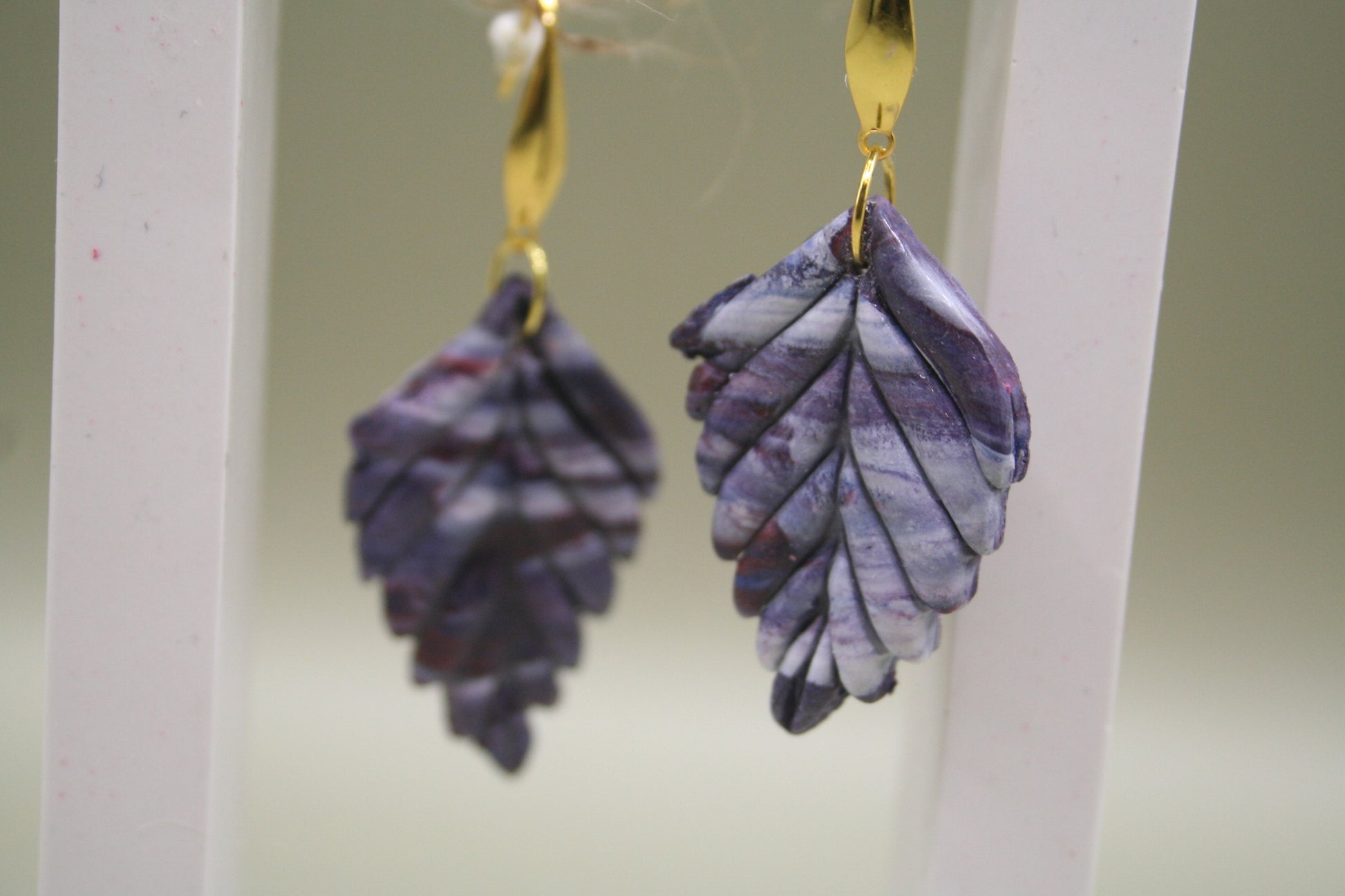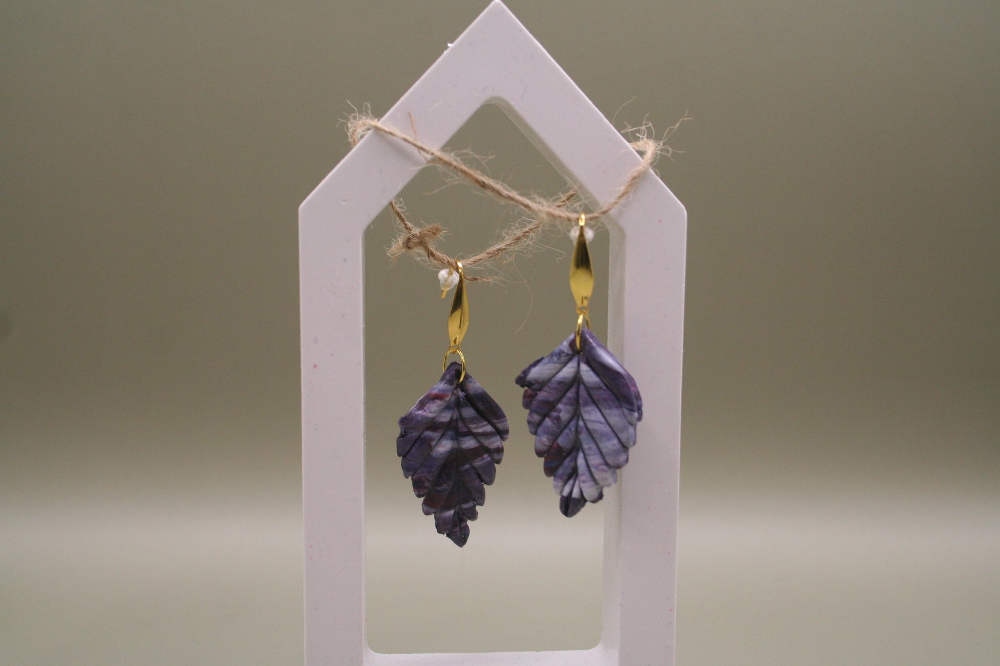 Boucles d’oreilles en forme de feuille, au design nervuré et à la finition marbrée. Leur silhouette organique et leur attache délicate en font une pièce à la fois sculpturale et légère.