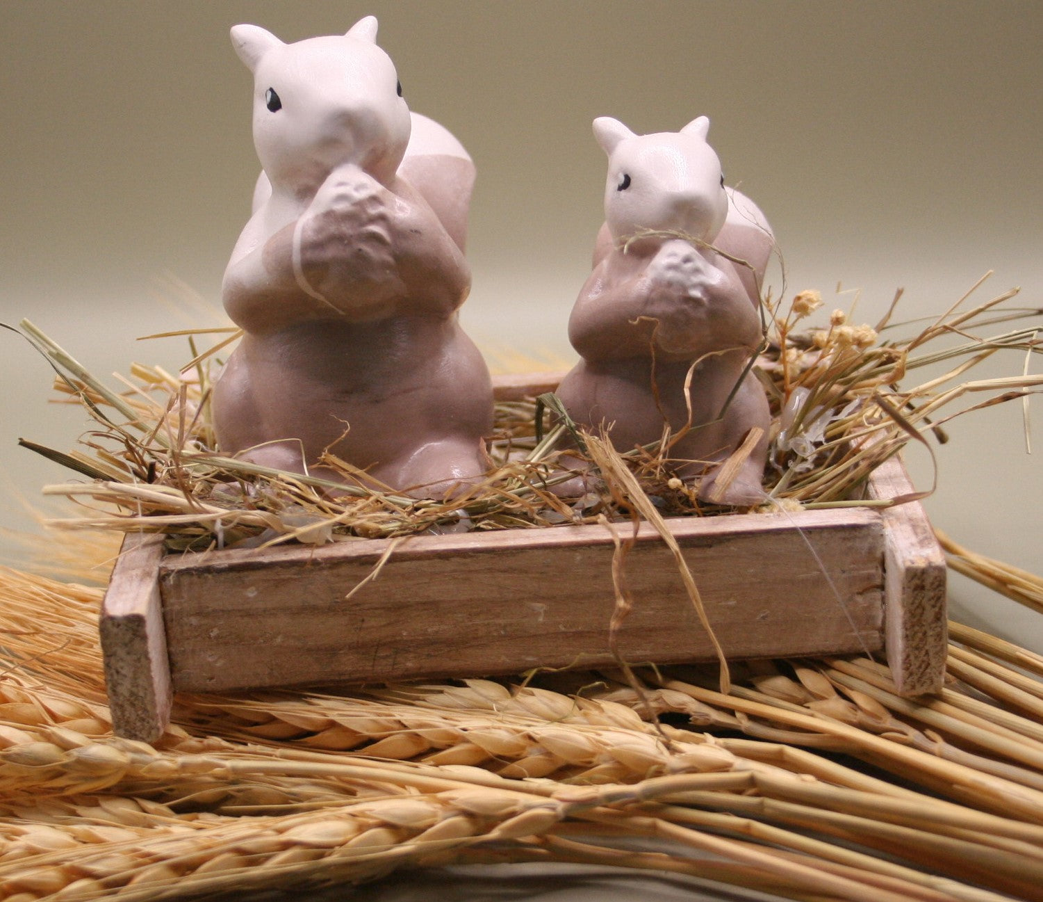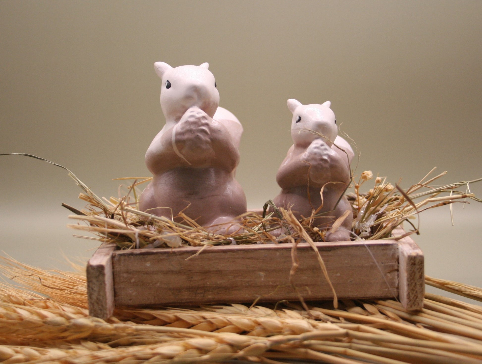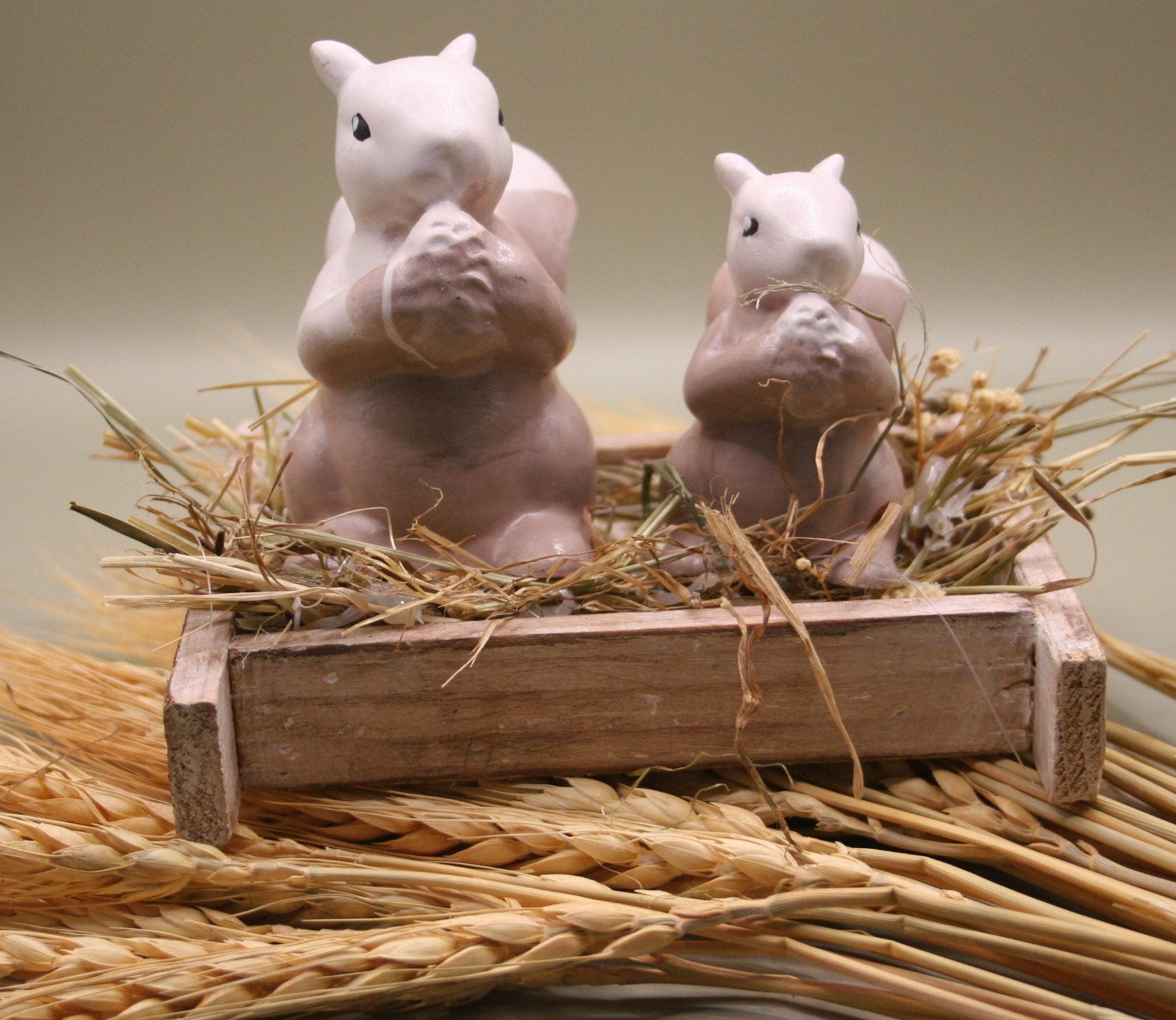 Invitez la nature chez vous avec "Nid Douillet", une sculpture artisanale mettant en scène deux adorables écureuils lovés dans un lit de foin rustique, installés sur un petit socle en bois naturel. Réalisés à la main en résine naturelle, ces compagnons en teintes rosées douces évoquent tendresse, simplicité et chaleur.