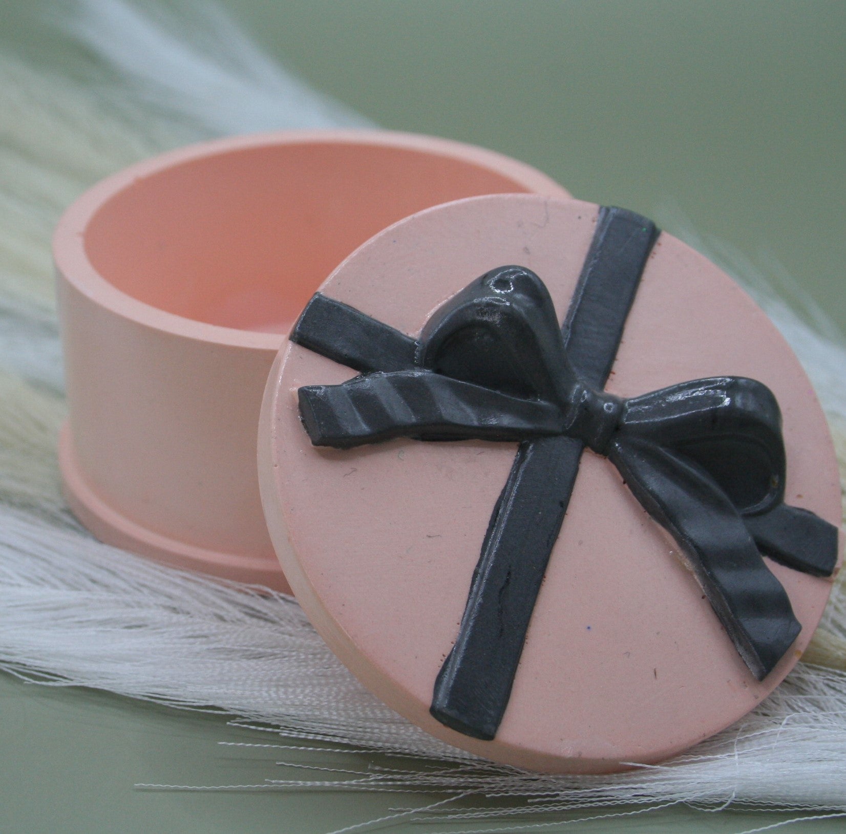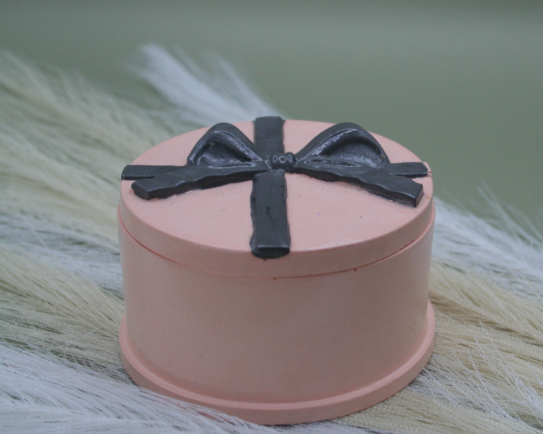 Petit contenant rond en résine naturelle, au design épuré et délicat. Son couvercle est orné d’un motif en forme de nœud, apportant une touche de raffinement tout en douceur. Idéal pour accueillir bijoux, petits objets précieux ou simplement sublimer un espace avec élégance et simplicité.
