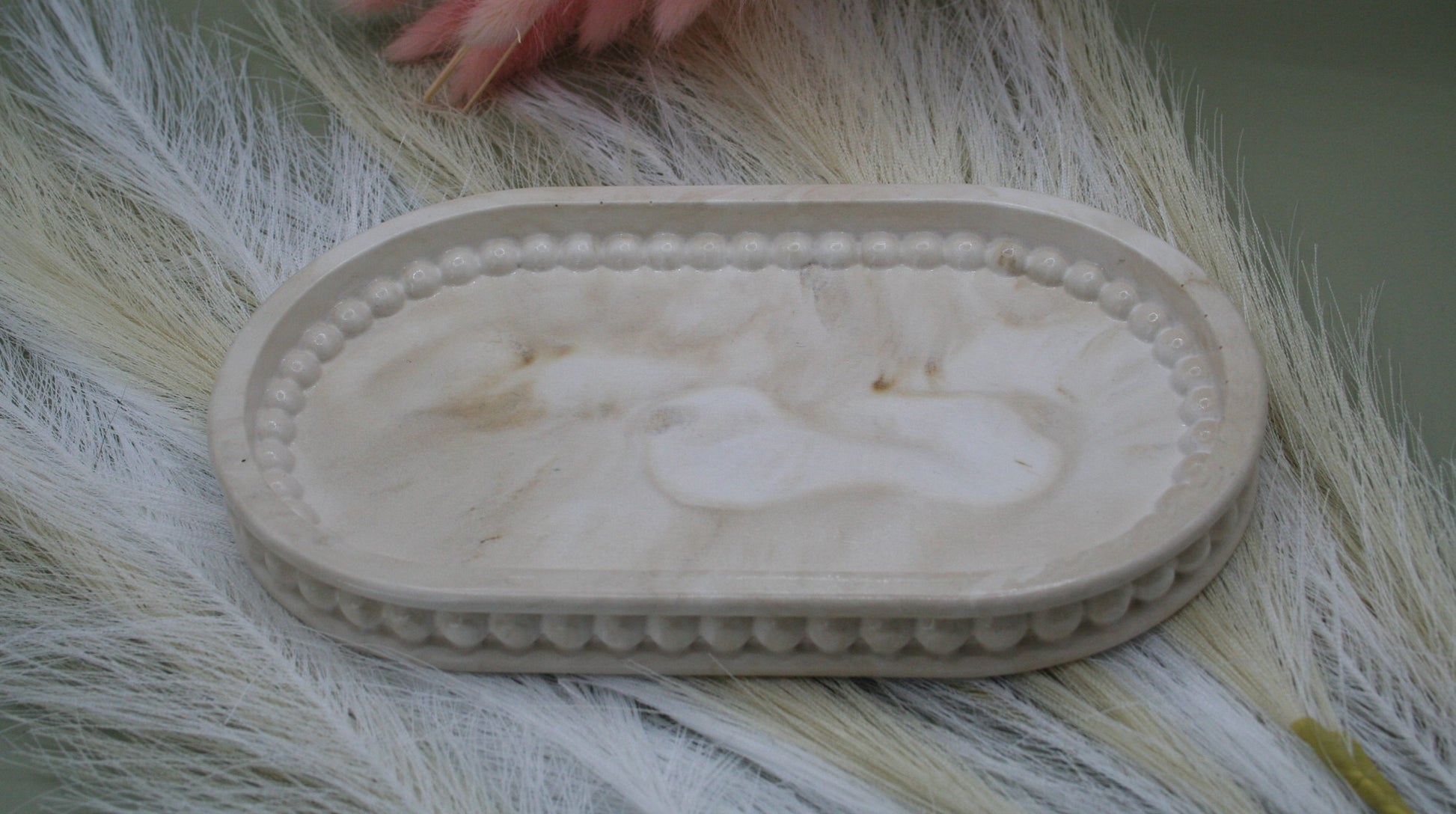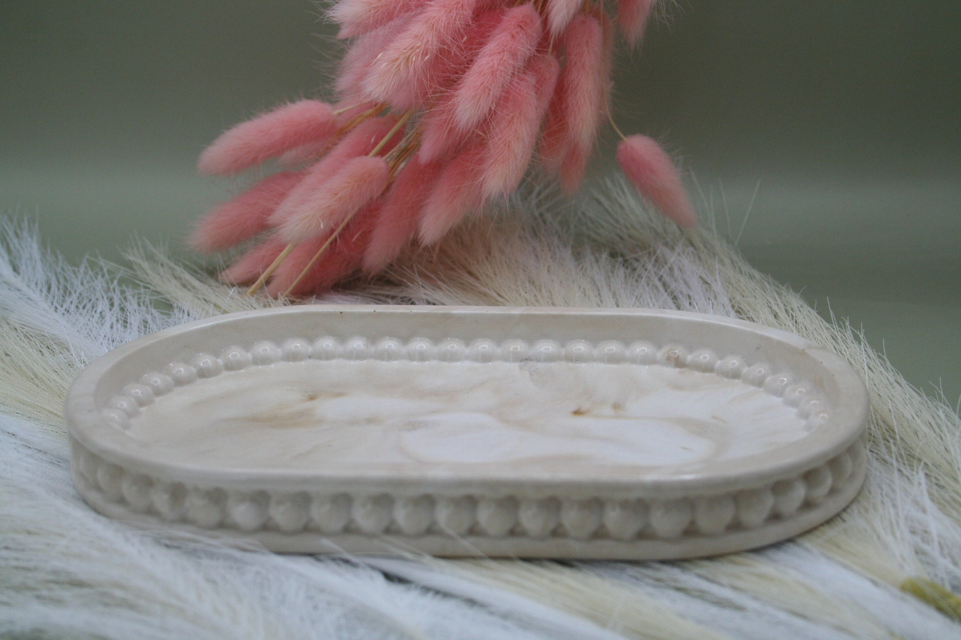Avec son élégant rebord perlé, ce plateau en résine naturelle au fini délicat est une pièce chic et polyvalente. Il trouvera sa place dans une salle de bain, une chambre ou une entrée pour y déposer bijoux ou accessoires. Sa sobriété lui permet de s’adapter à tous les styles d’intérieur. Un plateau raffiné et intemporel.