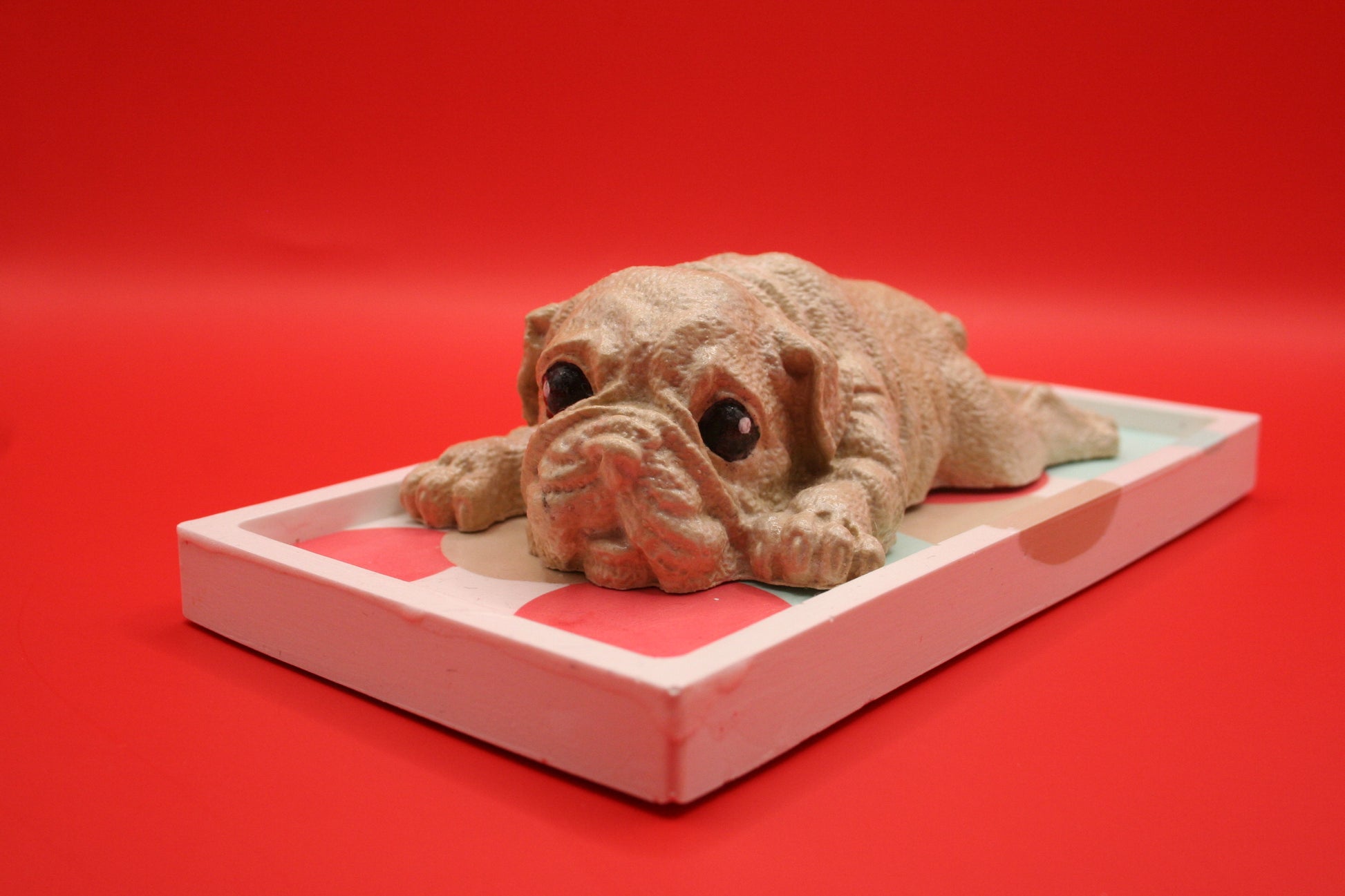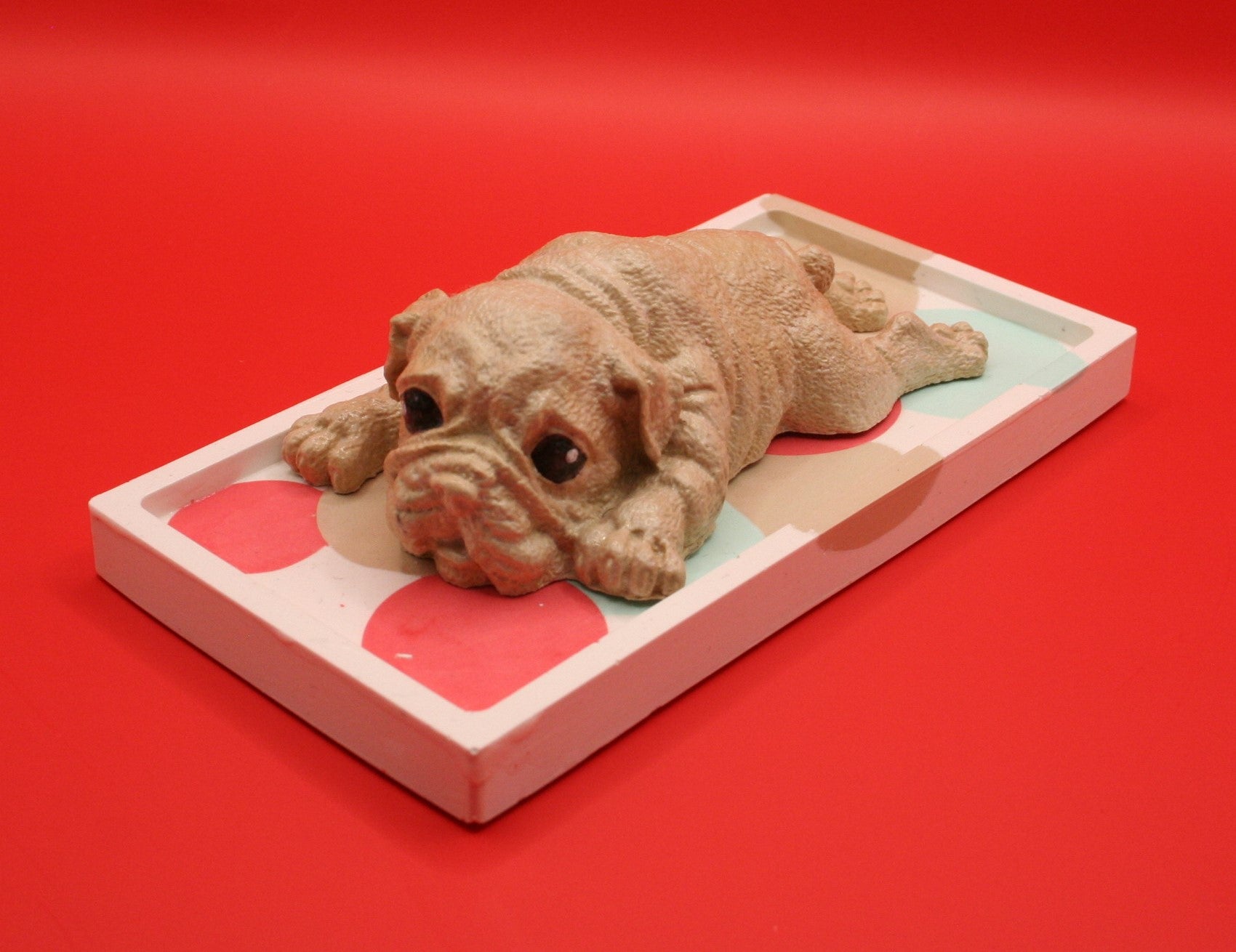 Un petit compagnon pour votre maison ! Notre figurine de bouledogue "P'tit Doudou", réalisée en résine naturelle, est d'un réalisme saisissant. Allongée sur un plateau décoratif aux motifs de ronds pastel, elle affiche une expression d'une tendresse infinie. Un objet de décoration charmant qui ravira les amoureux des chiens et apportera une touche de douceur à votre intérieur.