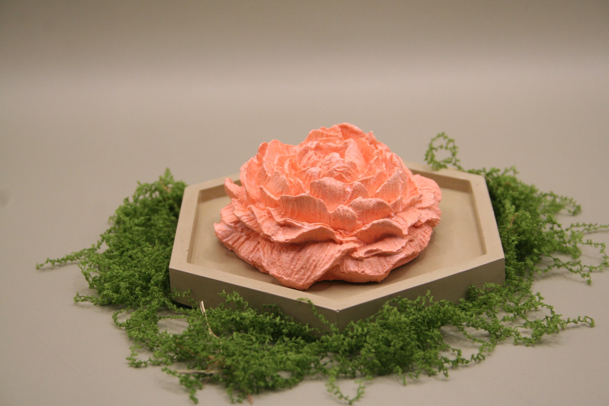 Décorations florale en résine naturelle, chacune en forme d’hexagone surmonté d’une fleur . Les couleurs pastel et corail s’harmonisent pour créer une composition florale chic et apaisante. À disposer ensemble ou séparément pour personnaliser votre espace.